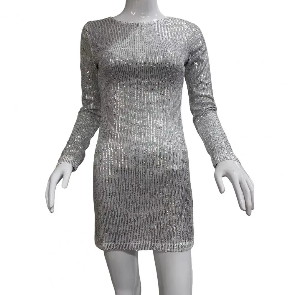 Elegant Women Evening Dress Shiny Sequin Slim Sheath Long Sleeves Mini Dress...