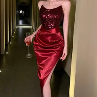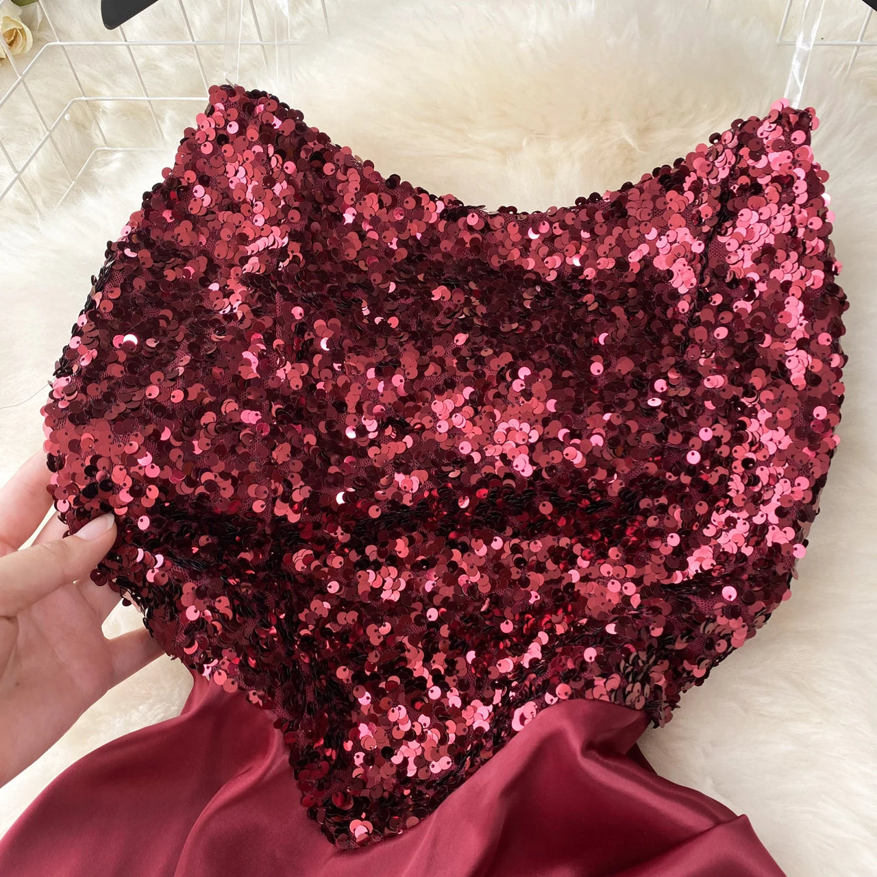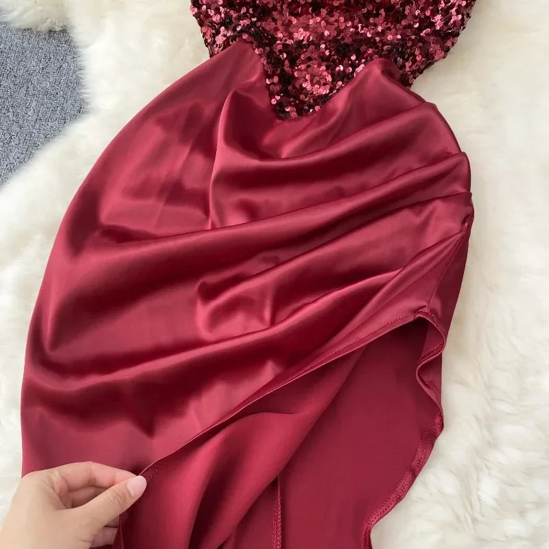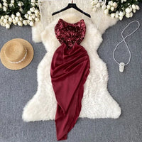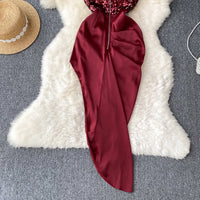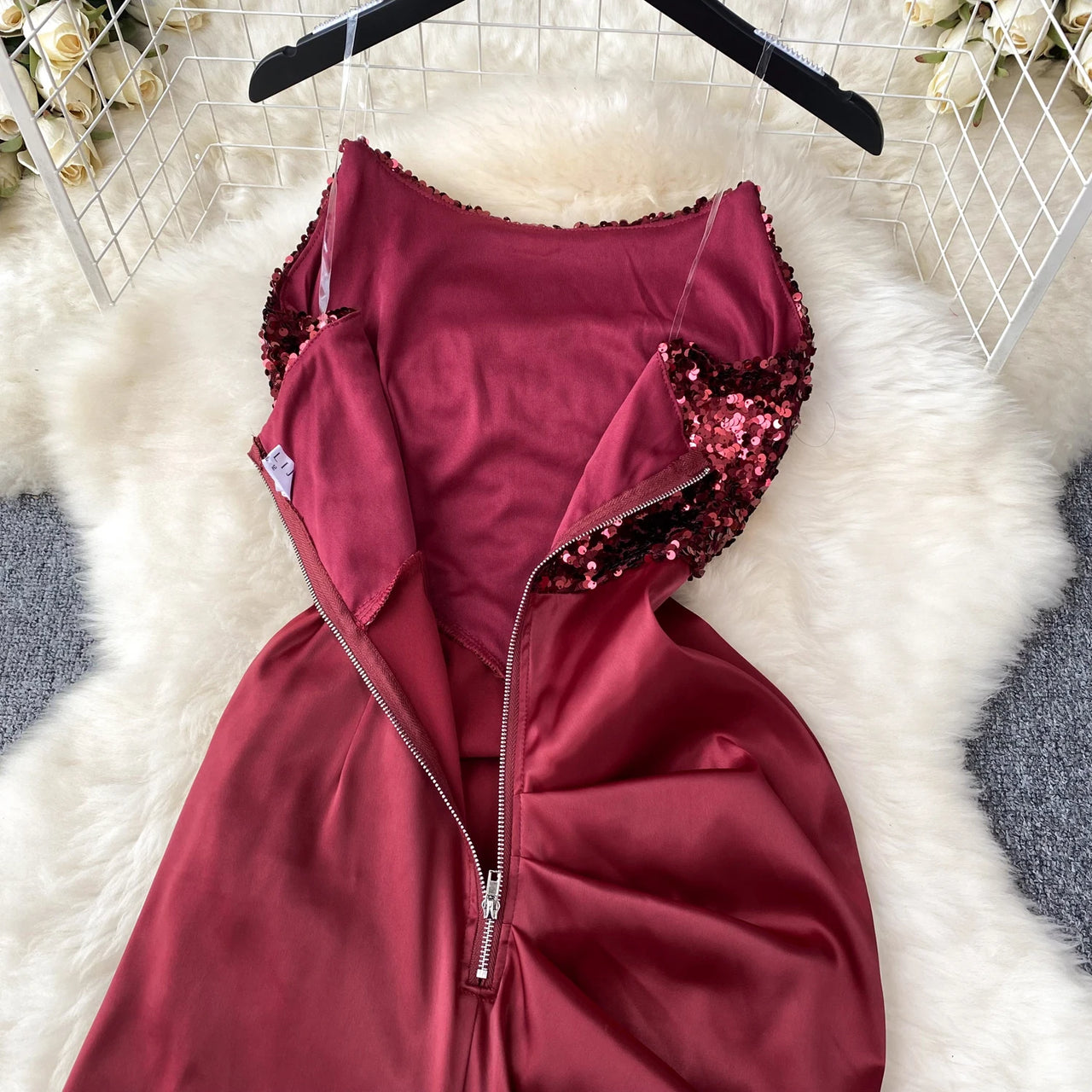 Chic Sequin Asymmetric Backless Slip Dress Sleeveless Korean Fashion Vestidos Women Vintage Summer Hip Wrap Dress