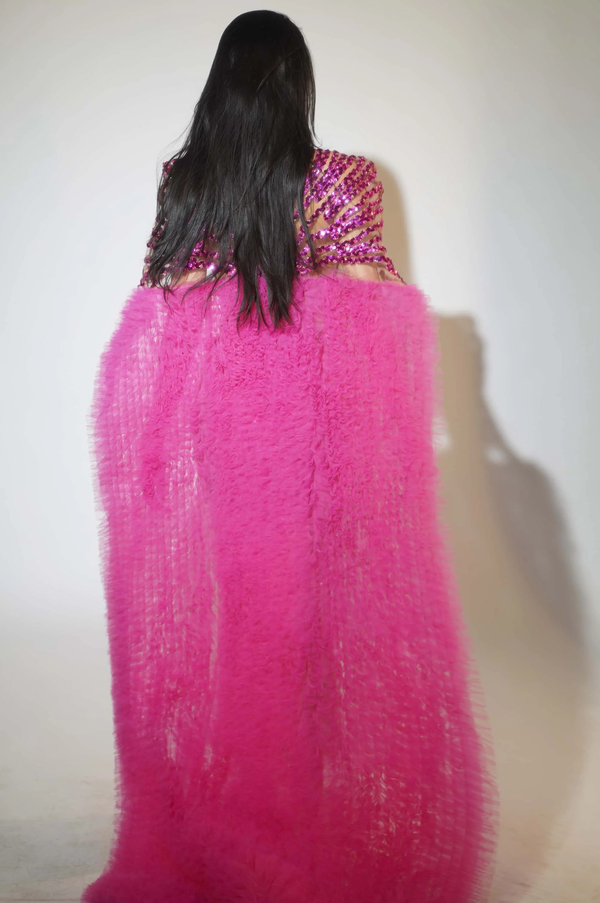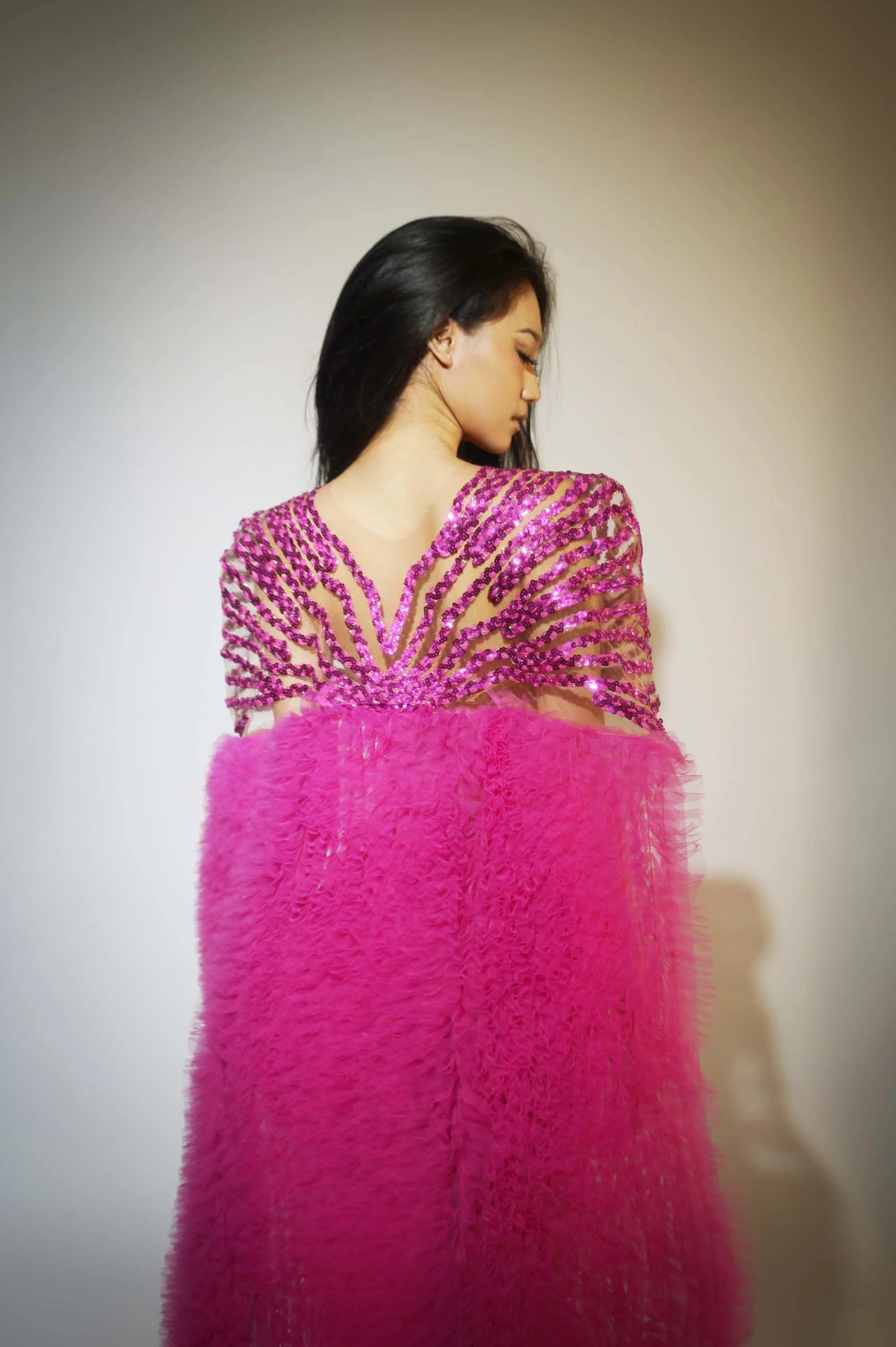 Elegant Pink Evening Gown for Women Birthday Celebrate Party Long Tail Dress Singer Show Wear Sexy Ball Dress with Cloak Lizhua