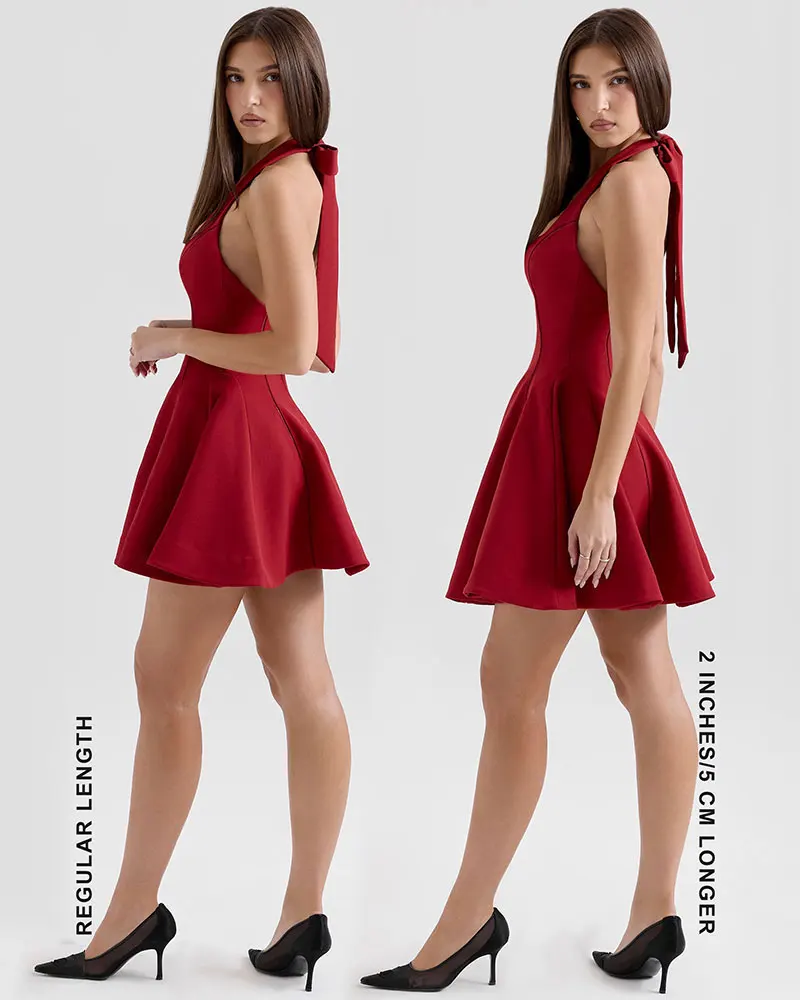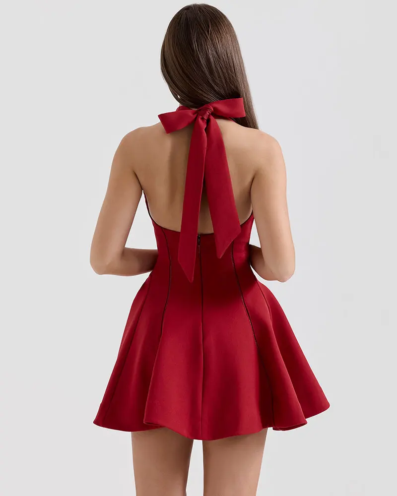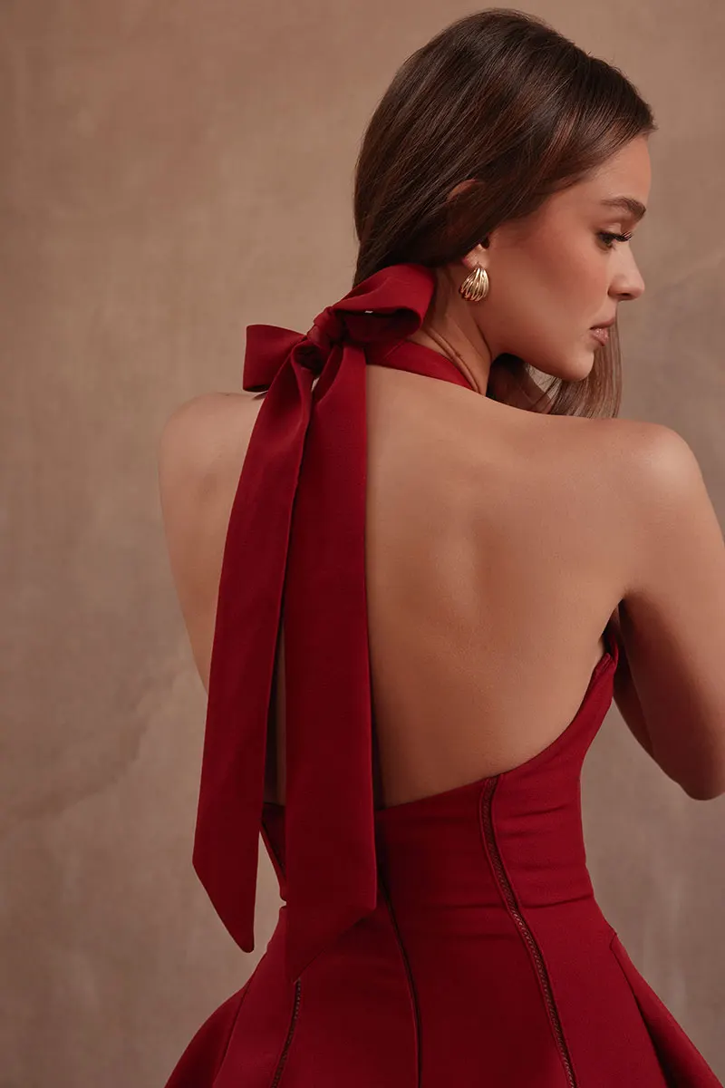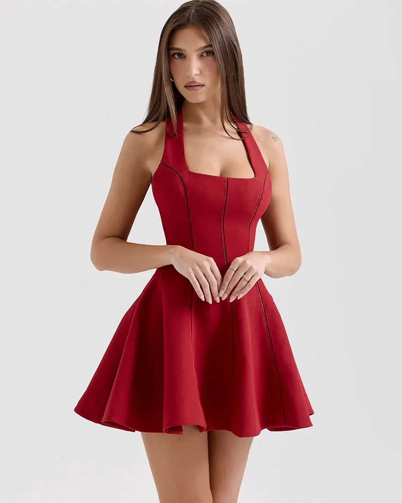 GACVGA Halter Sleeveless Sexy Mini A-line Dress For Women Summer Fashion Red Gown High Waist Club Party Long Evening Dress