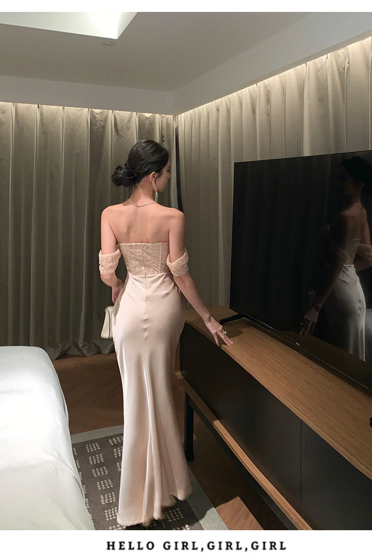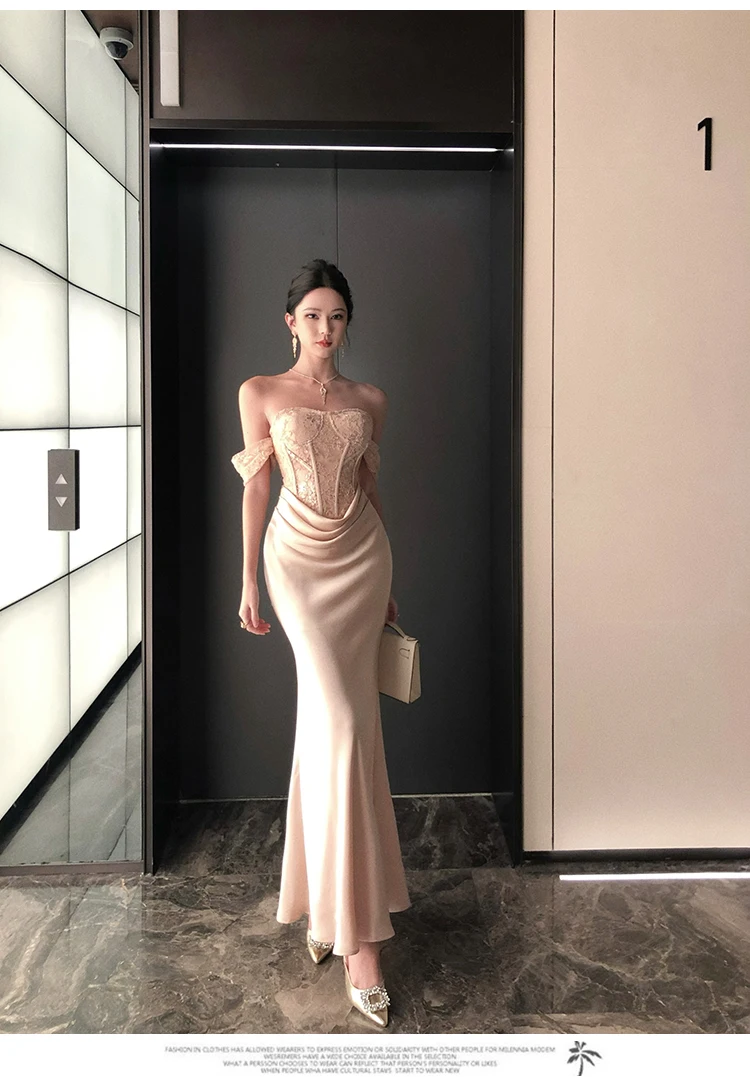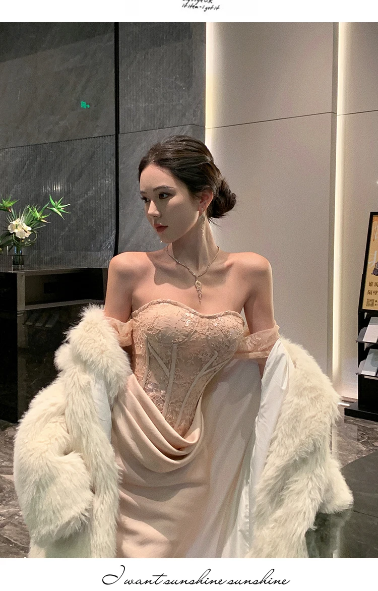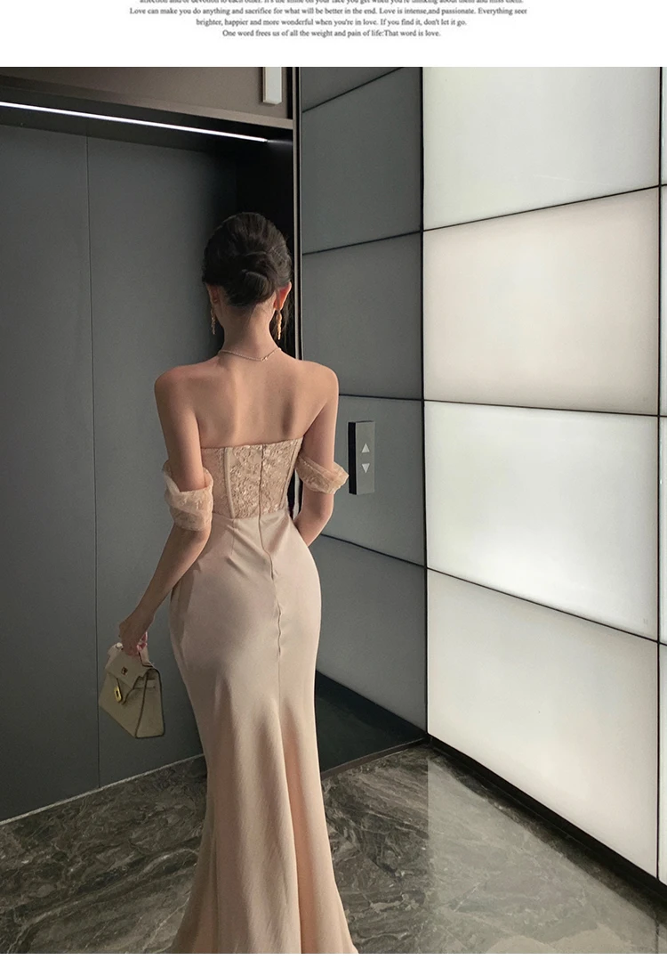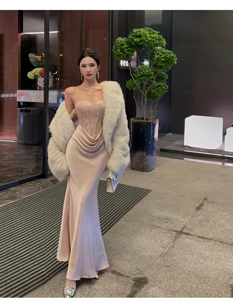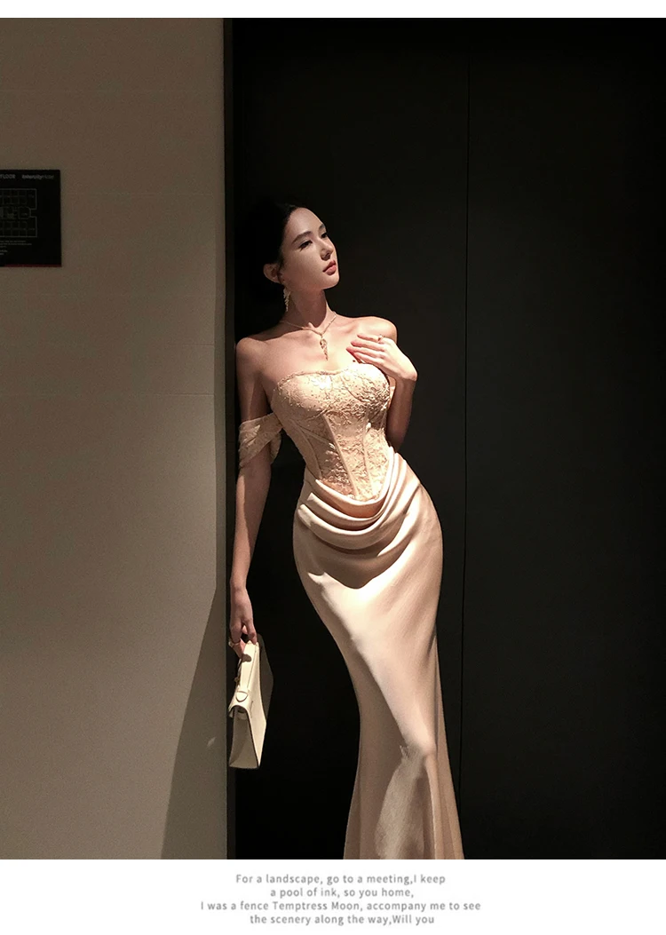 Heavy Industry Design Sexy Strapless Long Dress Autumn New High end Formal Occasions Birthday Party Evening Dress for Women