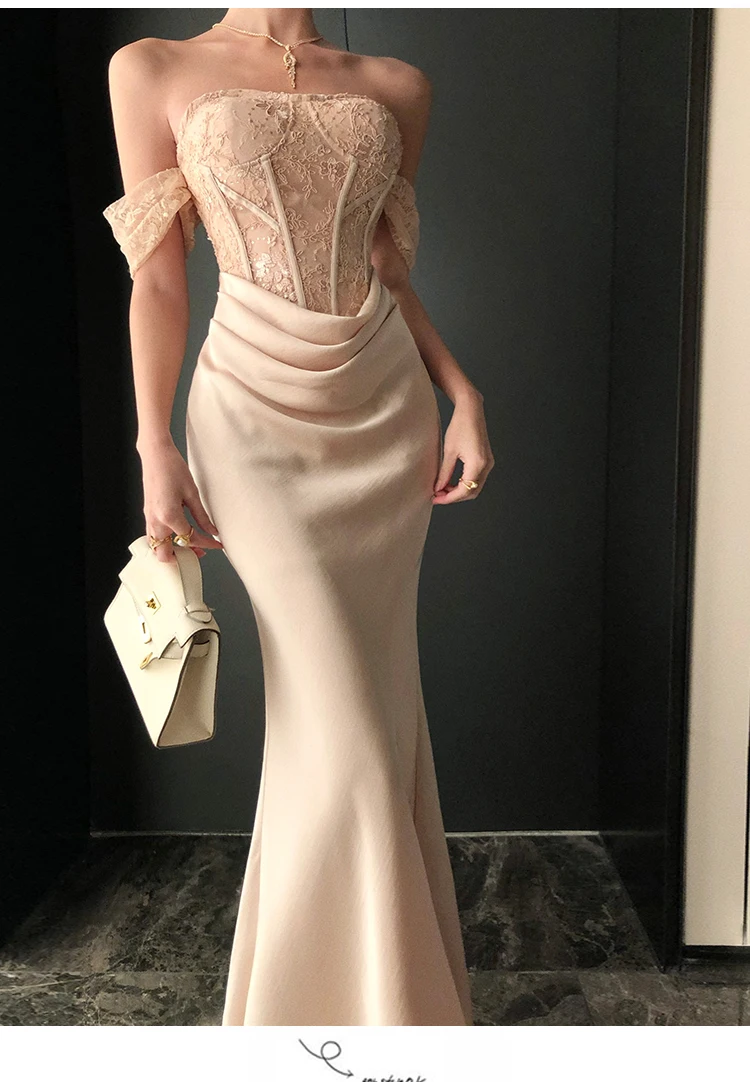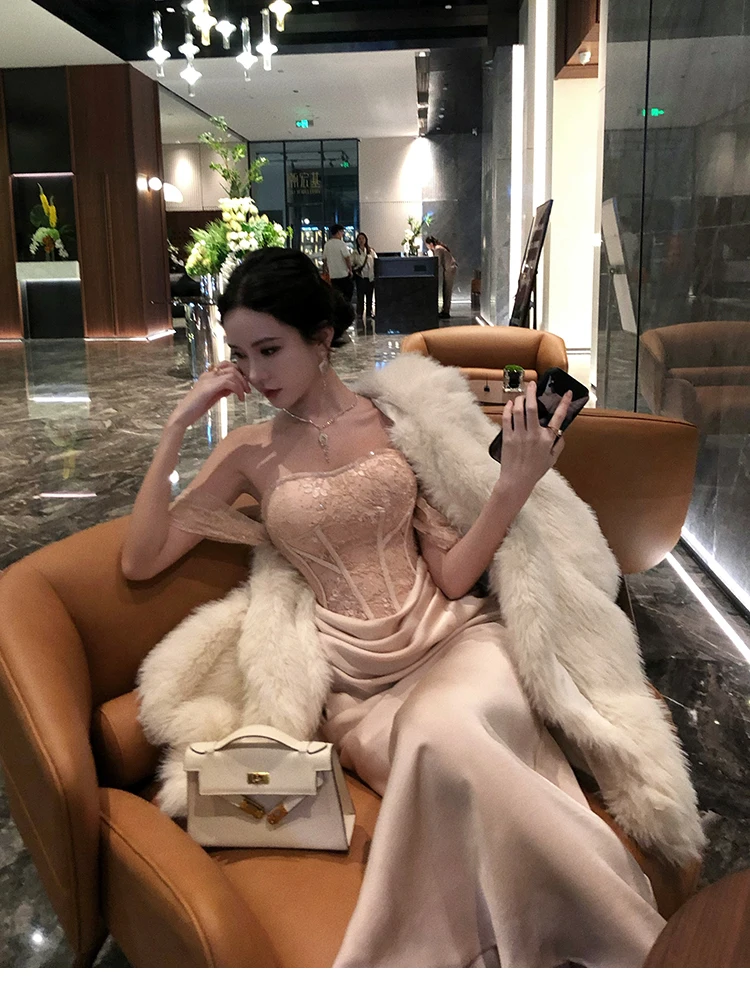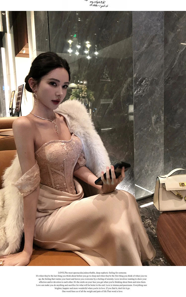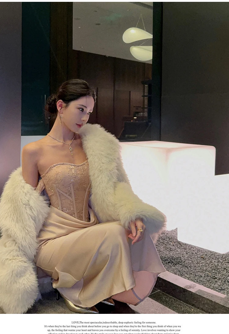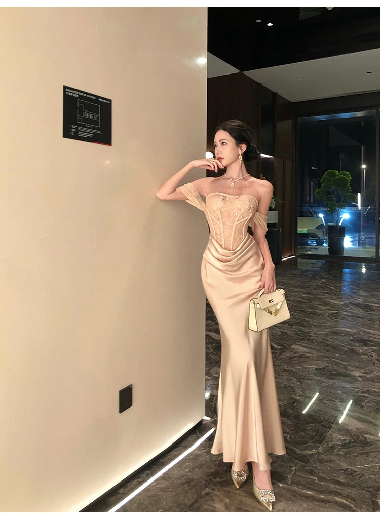 Heavy Industry Design Sexy Strapless Long Dress Autumn New High end Formal Occasions Birthday Party Evening Dress for Women