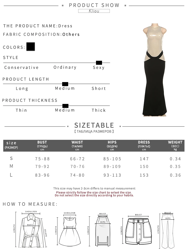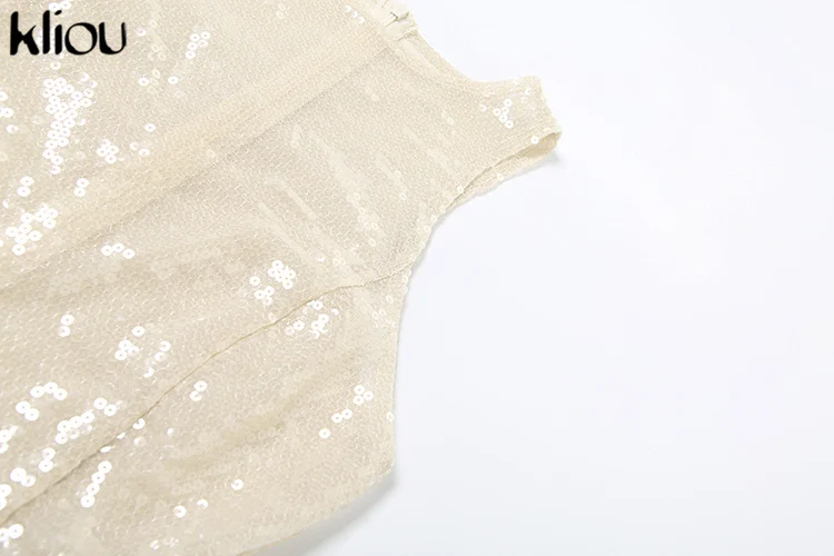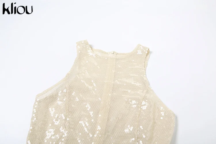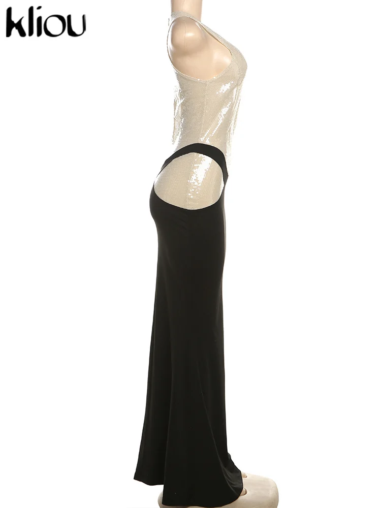 kliou Patchwork Sequins Women Maxi Dress Elegant Contrast Colors O-neck Sleeveless Bodycon...