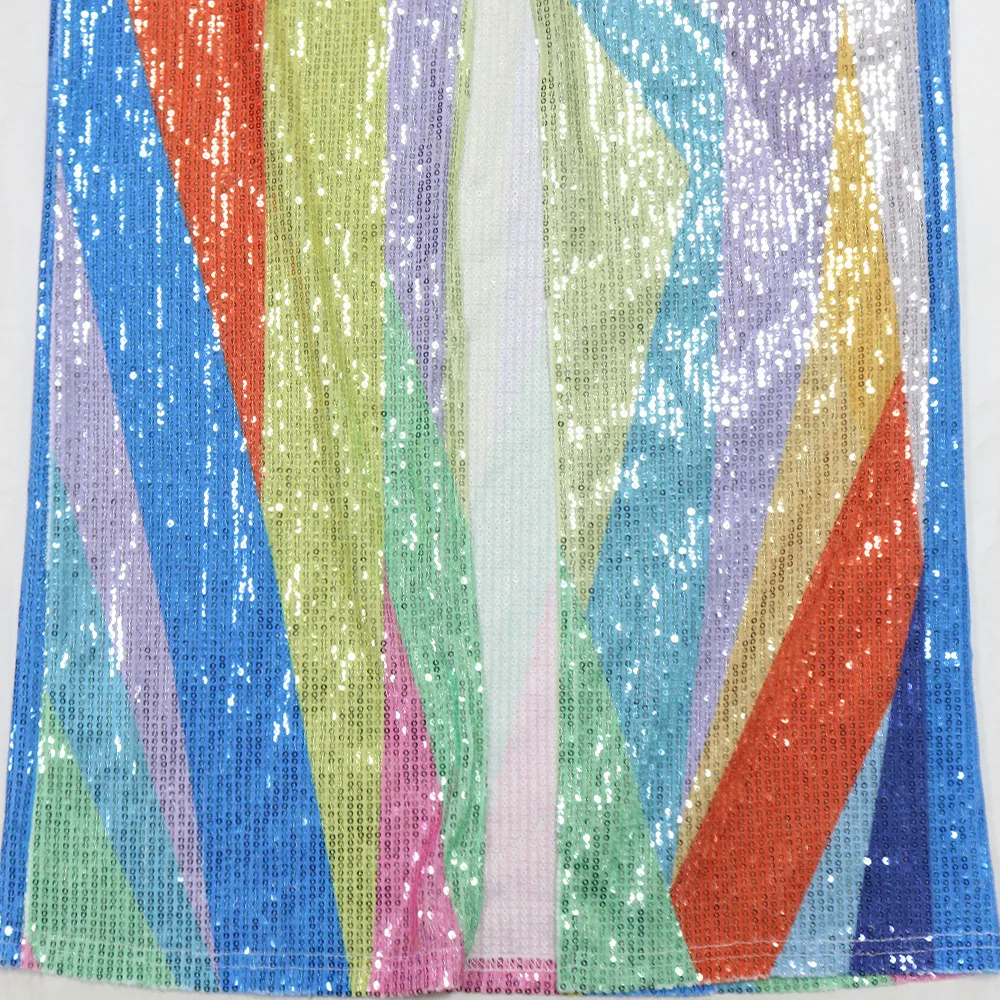 LKF Performance Dress, Nightclub Bar Sexy Dress, Colorful Striped Sequin High Slit...
