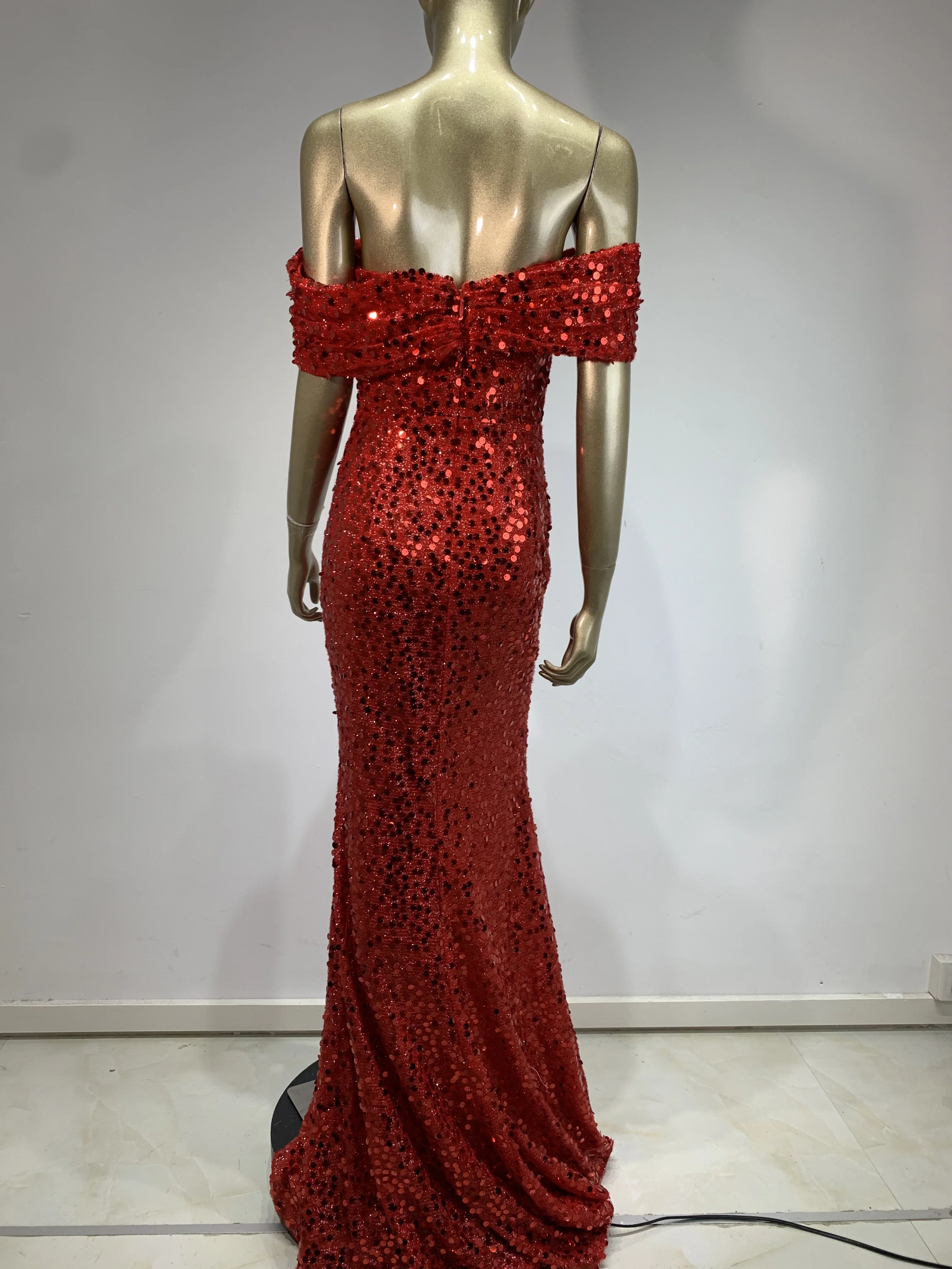 Luxury Prom Gowns for Women Elegant Red Off Shoulder Sequines Corset Maxi...