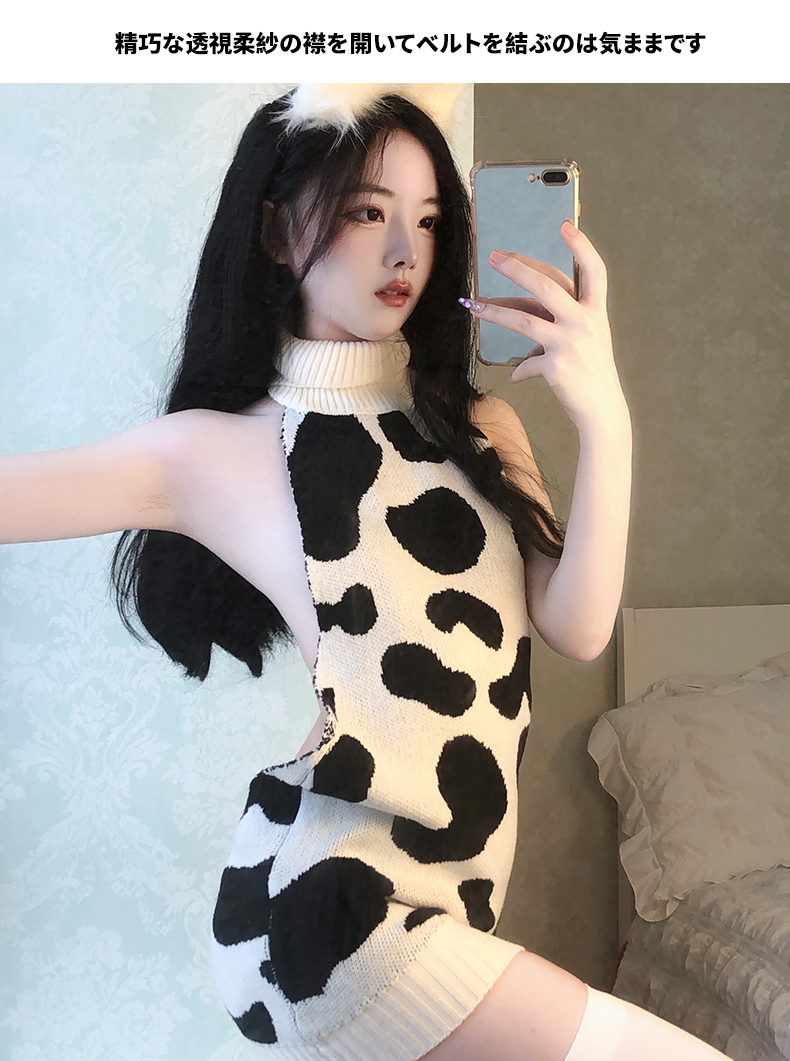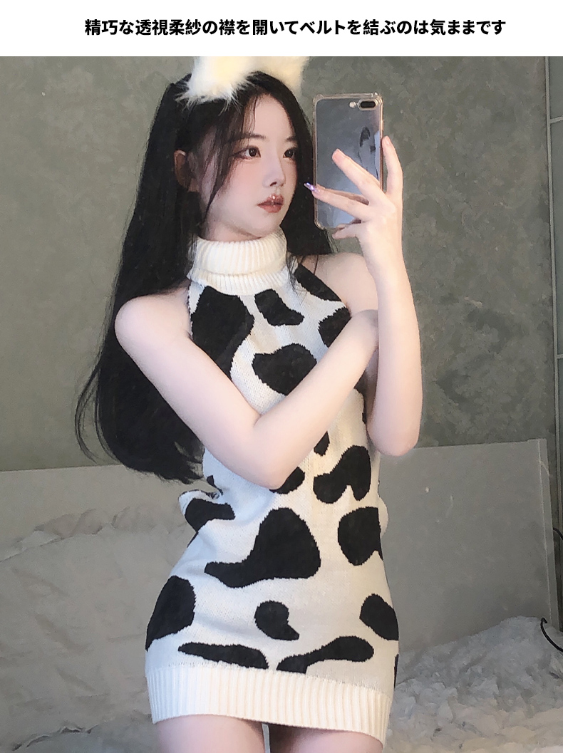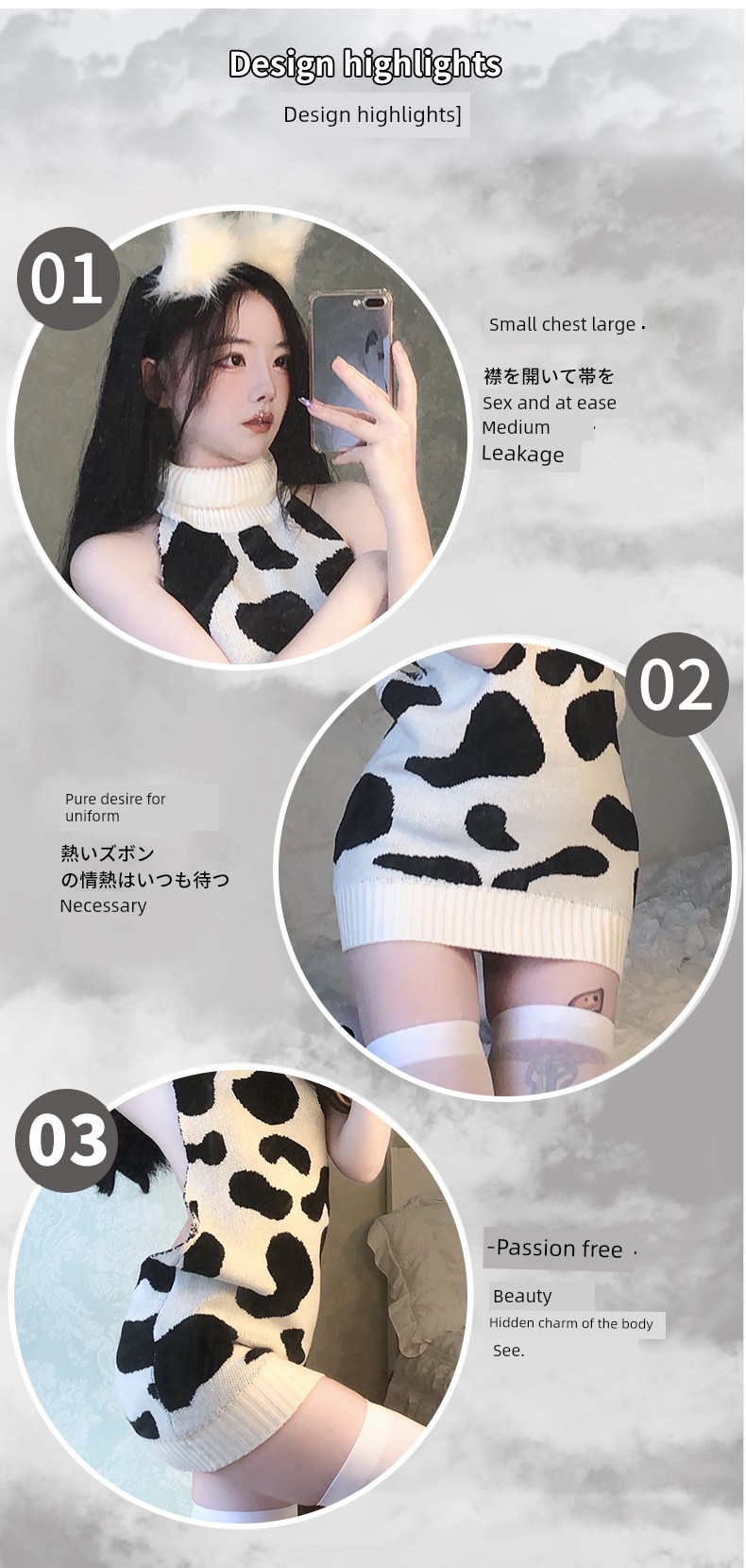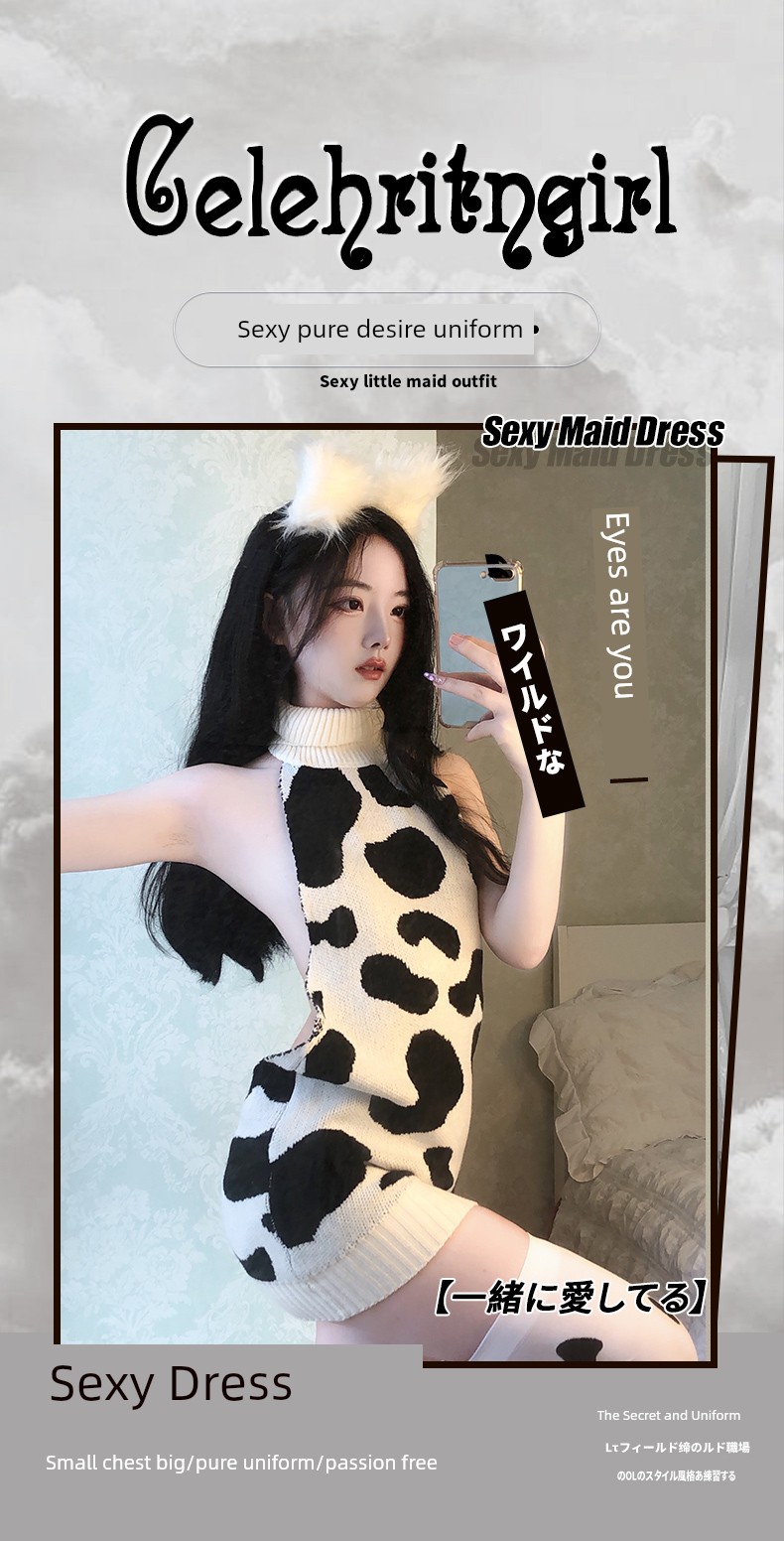 Plus Size Intimates Sexy Sweater Nightdress Women's Uniform Winter Bodycon Dress Cow Winter Bed Pajamas Halterneck Pajamas