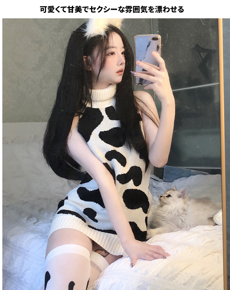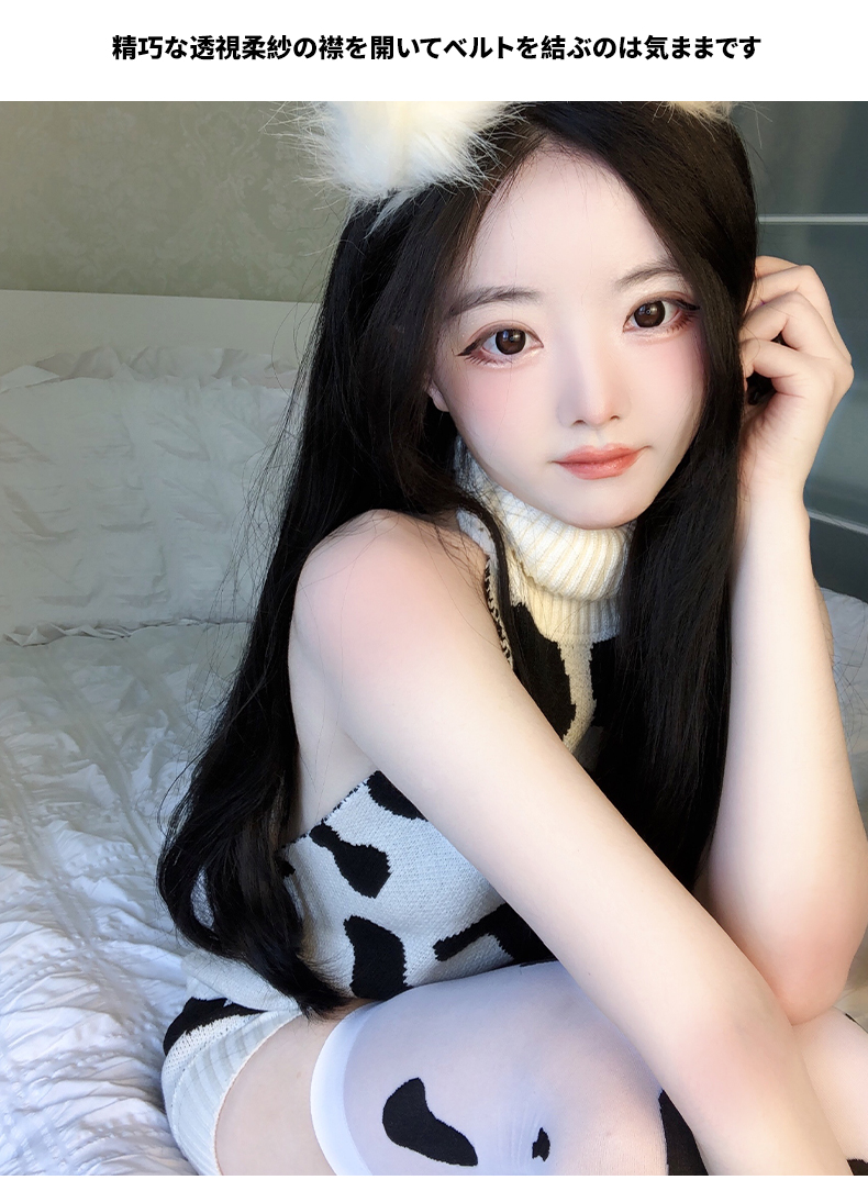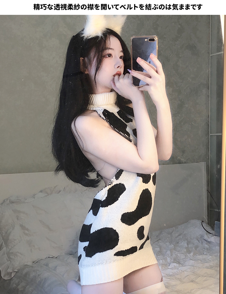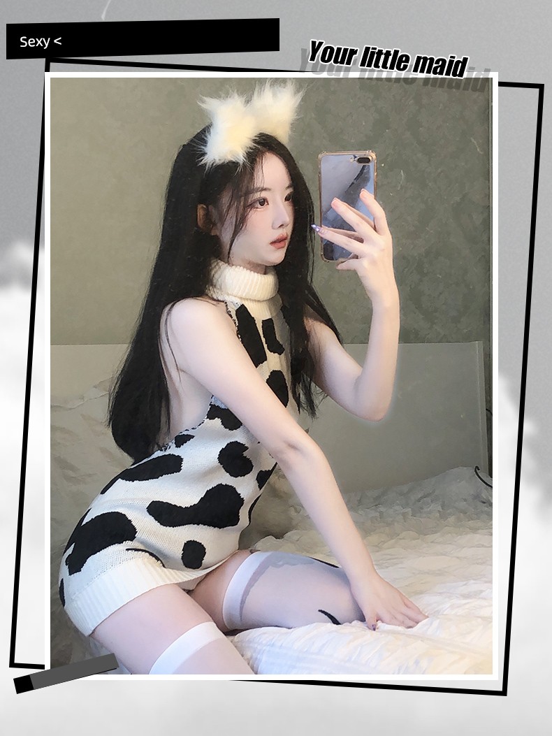 Plus Size Intimates Sexy Sweater Nightdress Women's Uniform Winter Bodycon Dress Cow Winter Bed Pajamas Halterneck Pajamas