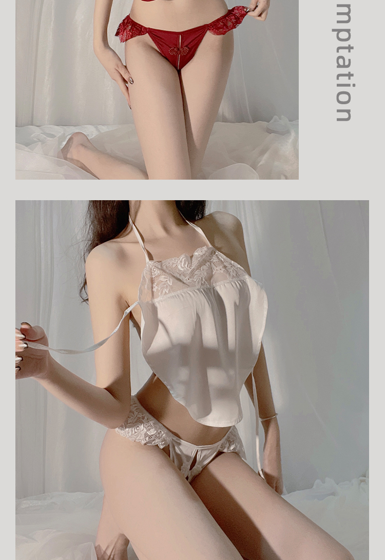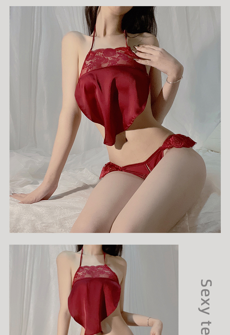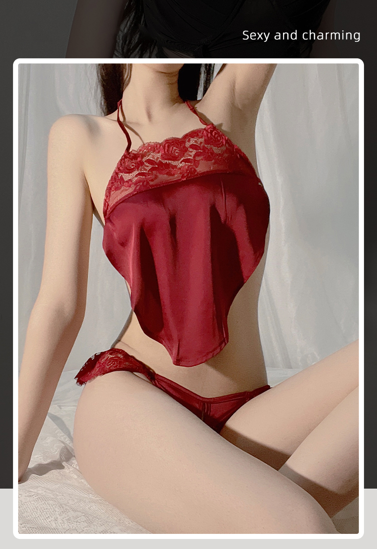 Red Apron Women's Ultra-Thin Sling Satin Uniform Seduction Sexy Pajamas 2023 New Arrival Strap Apron Intimates Women