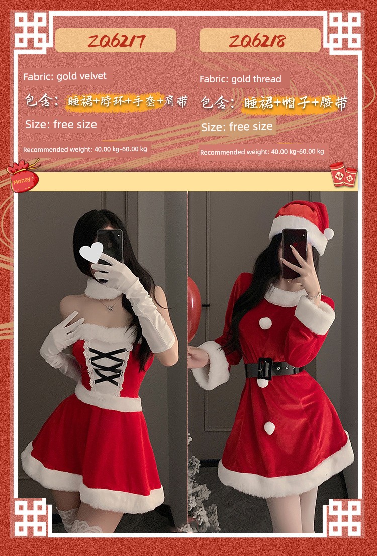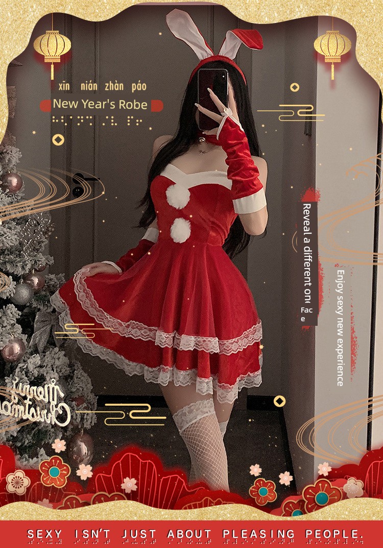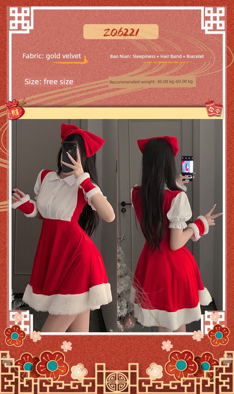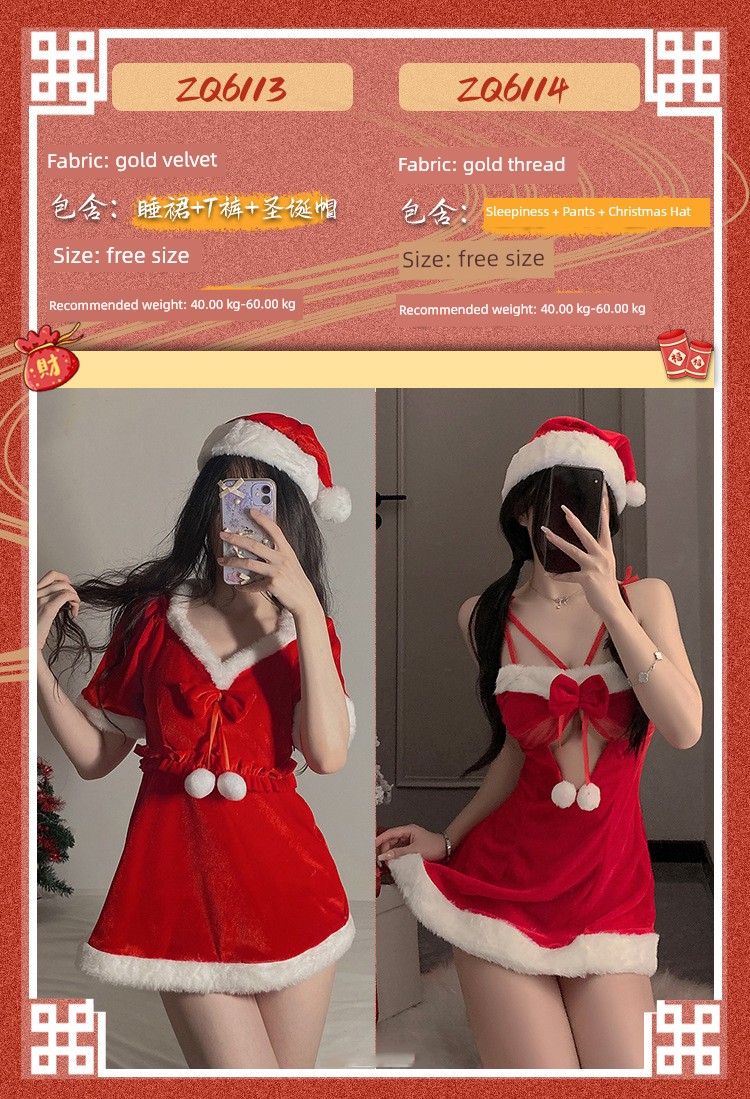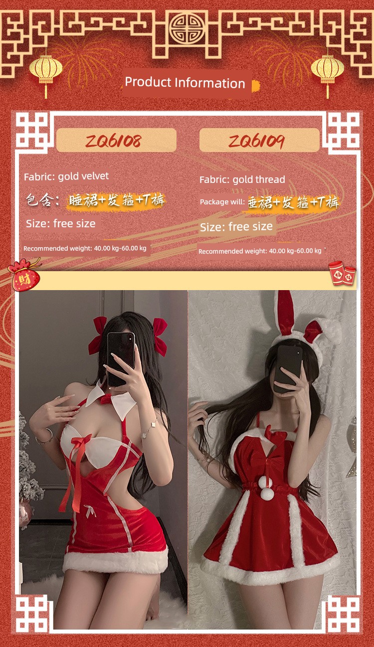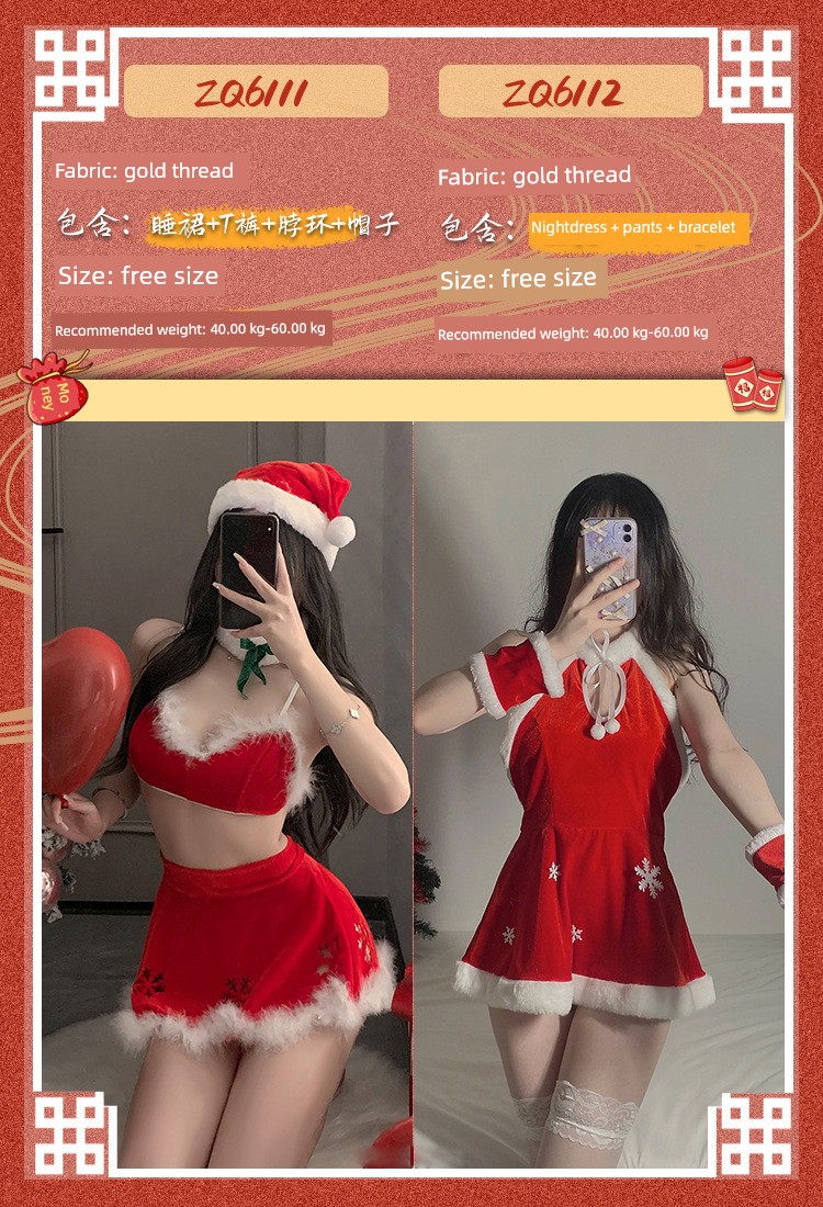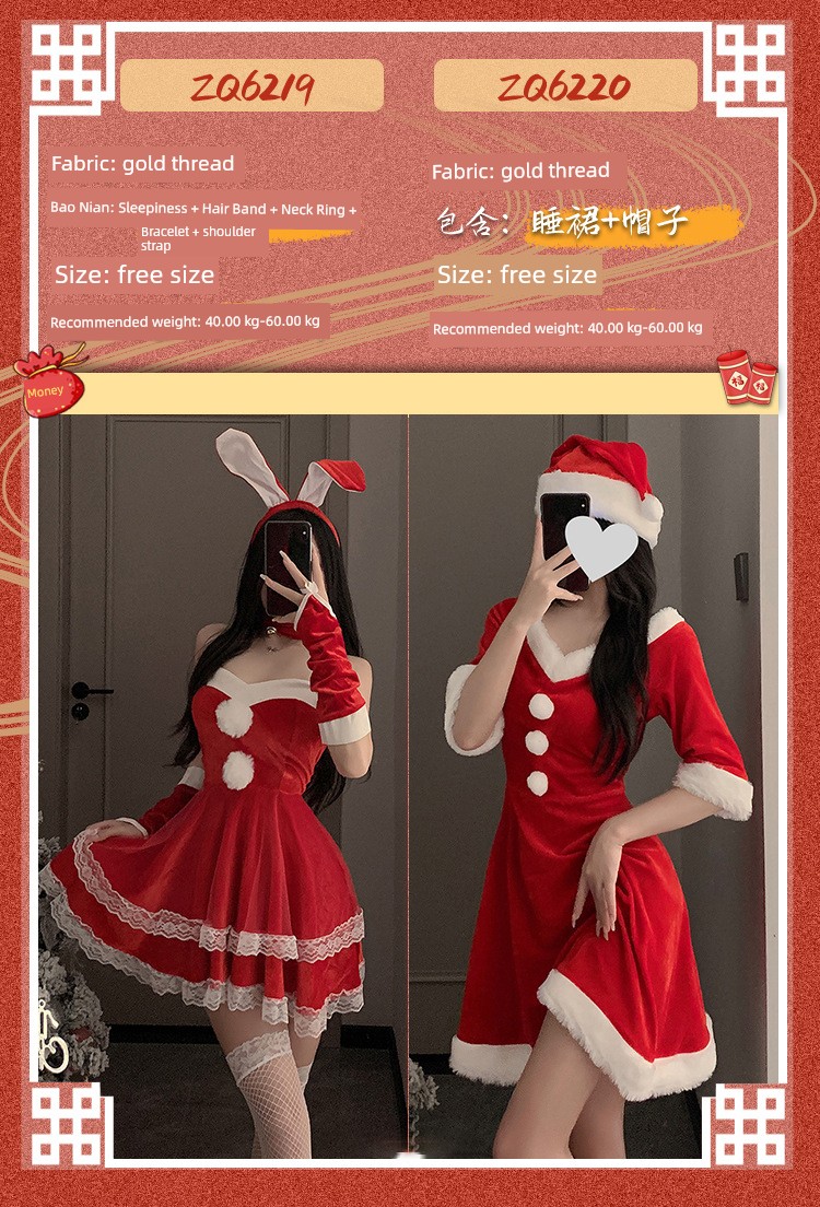 Sexy Pajamas 2024 New Arrival Christmas Date Intimates Nightgown Bed Shame Passion Uniform Temptation Qqny