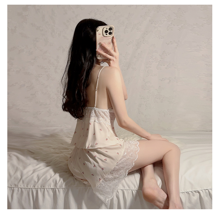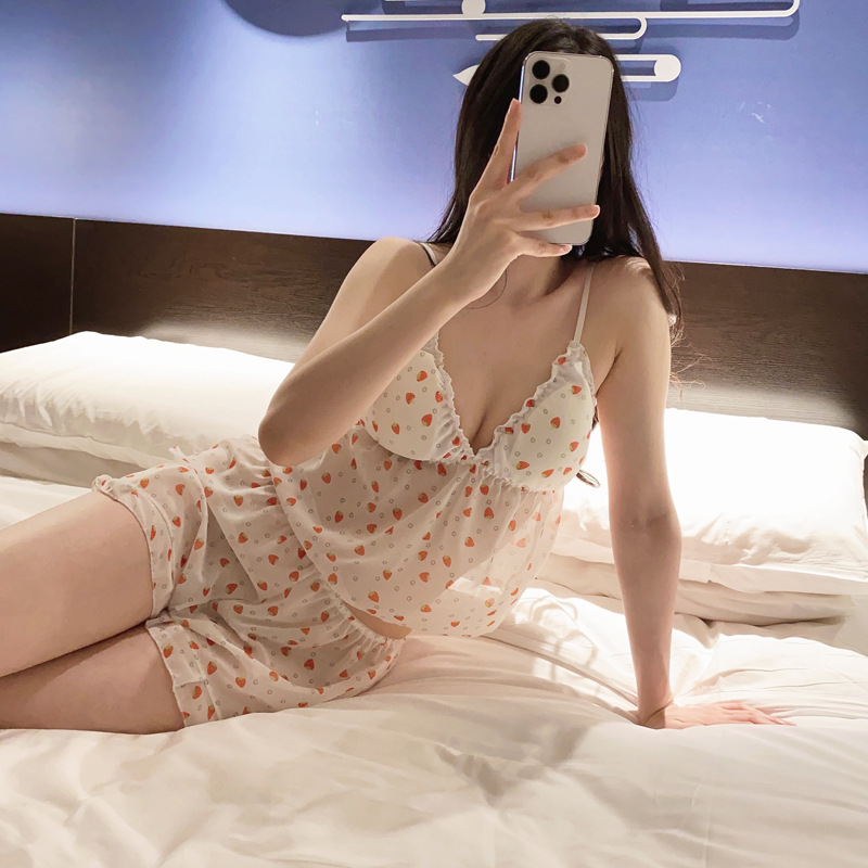 Sling Pajamas Two-piece Set Sexy V-neck Shorts Sexy Style Strawberry 2024 New...