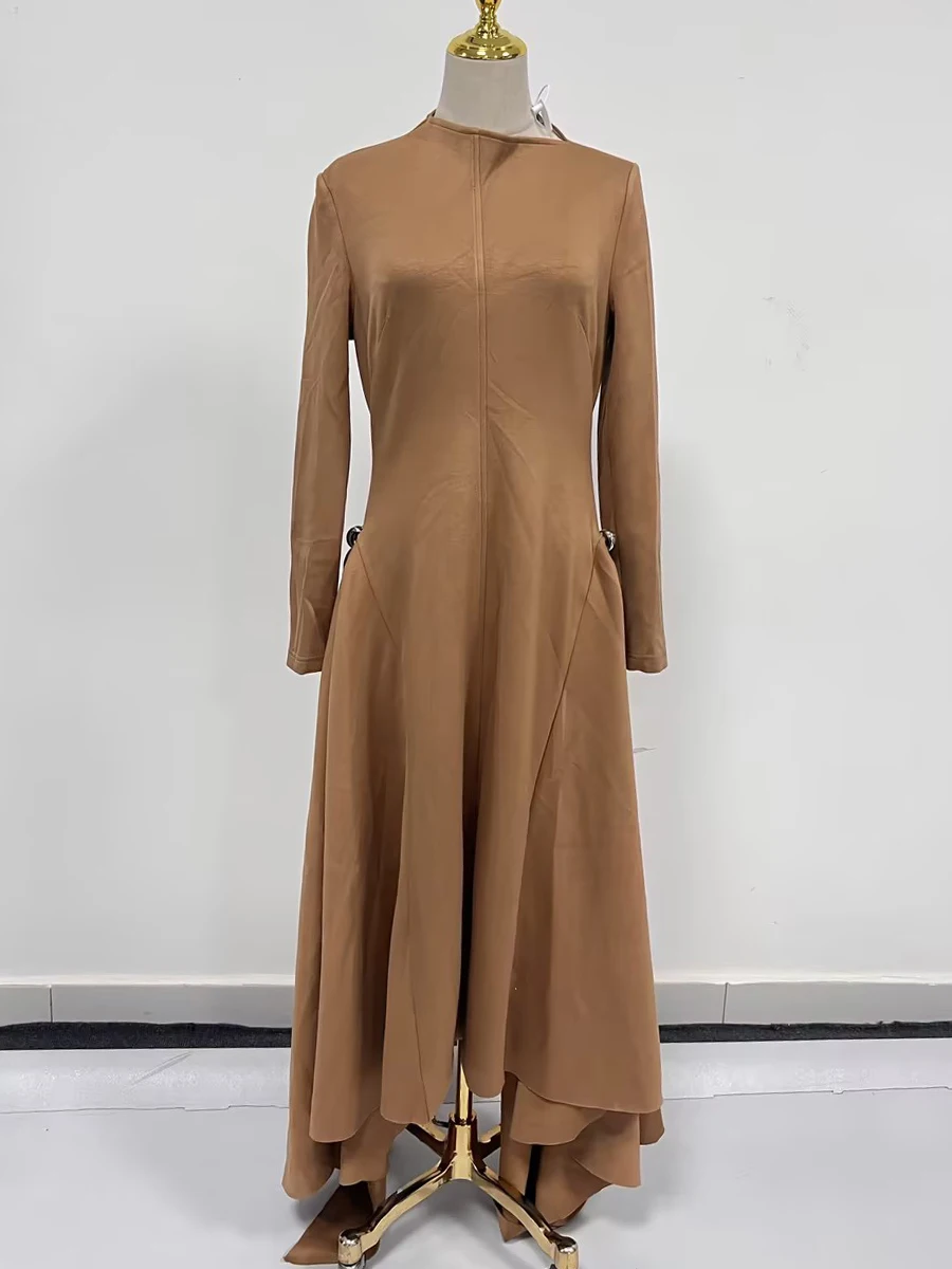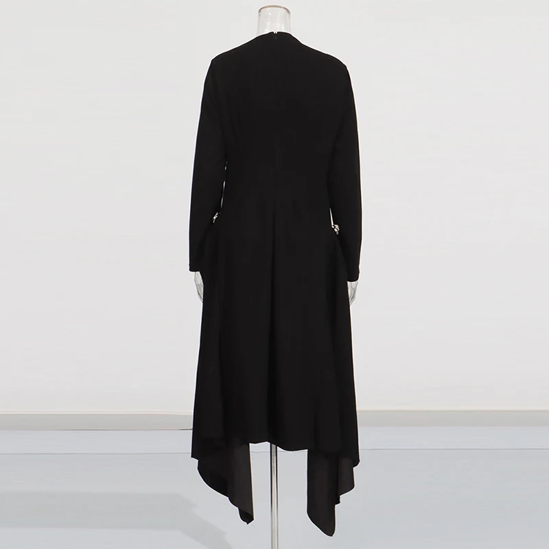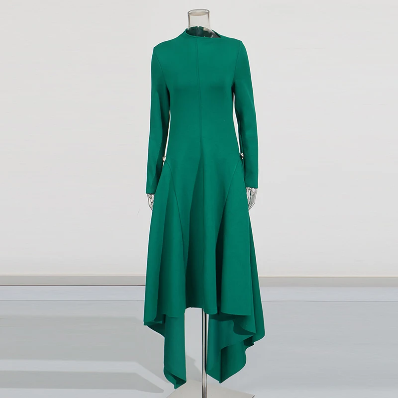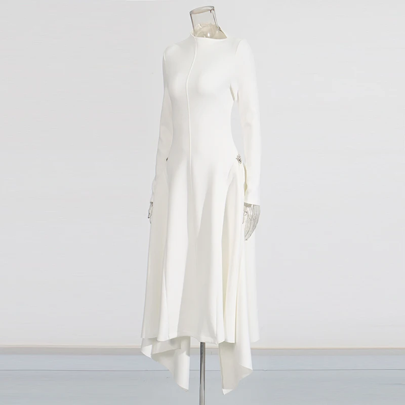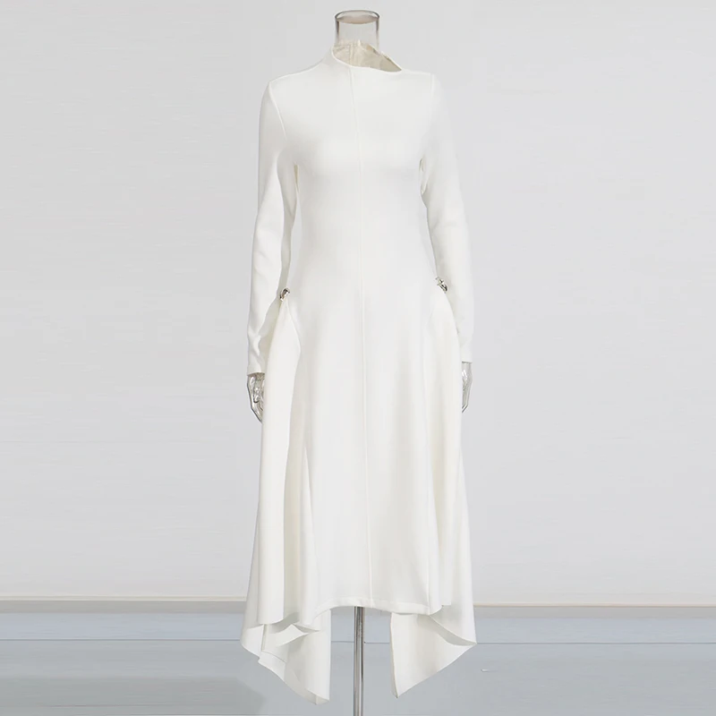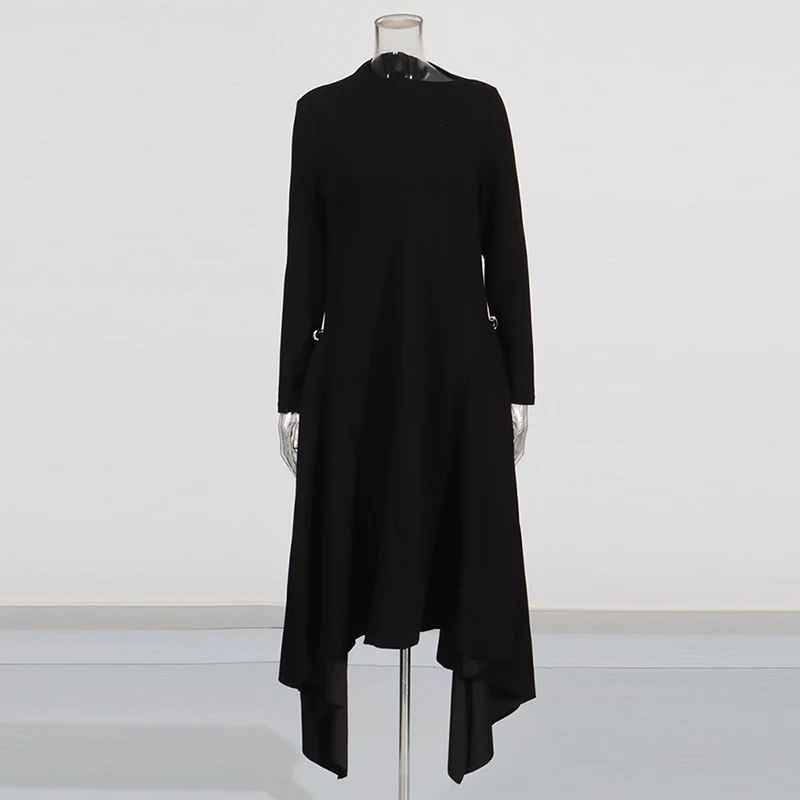 TWOTWINSTYLE Solid Slimming Spliced Ruffles Fold Dresses for Women Slanted Collar Long Sleeve Tunic Irregular Dress Female New