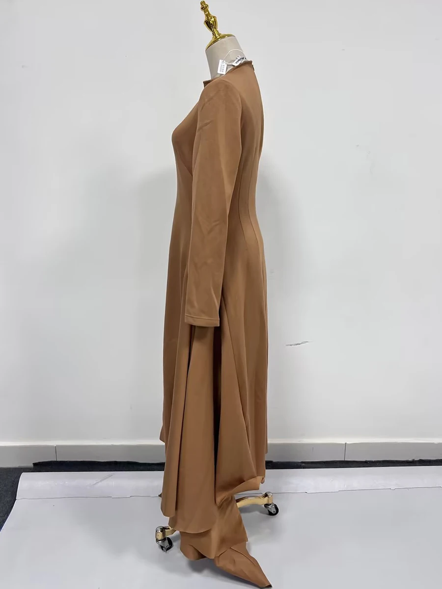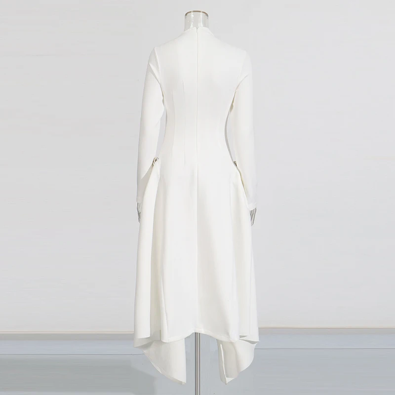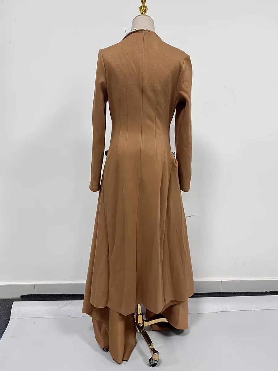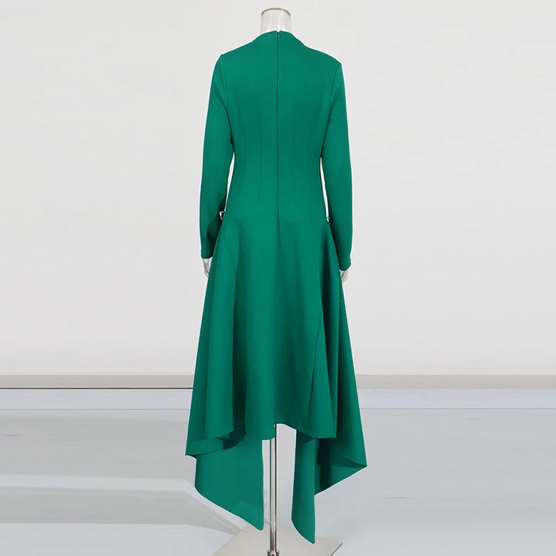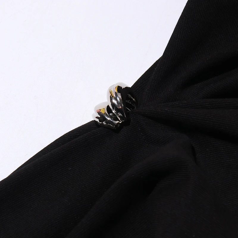 TWOTWINSTYLE Solid Slimming Spliced Ruffles Fold Dresses for Women Slanted Collar Long Sleeve Tunic Irregular Dress Female New