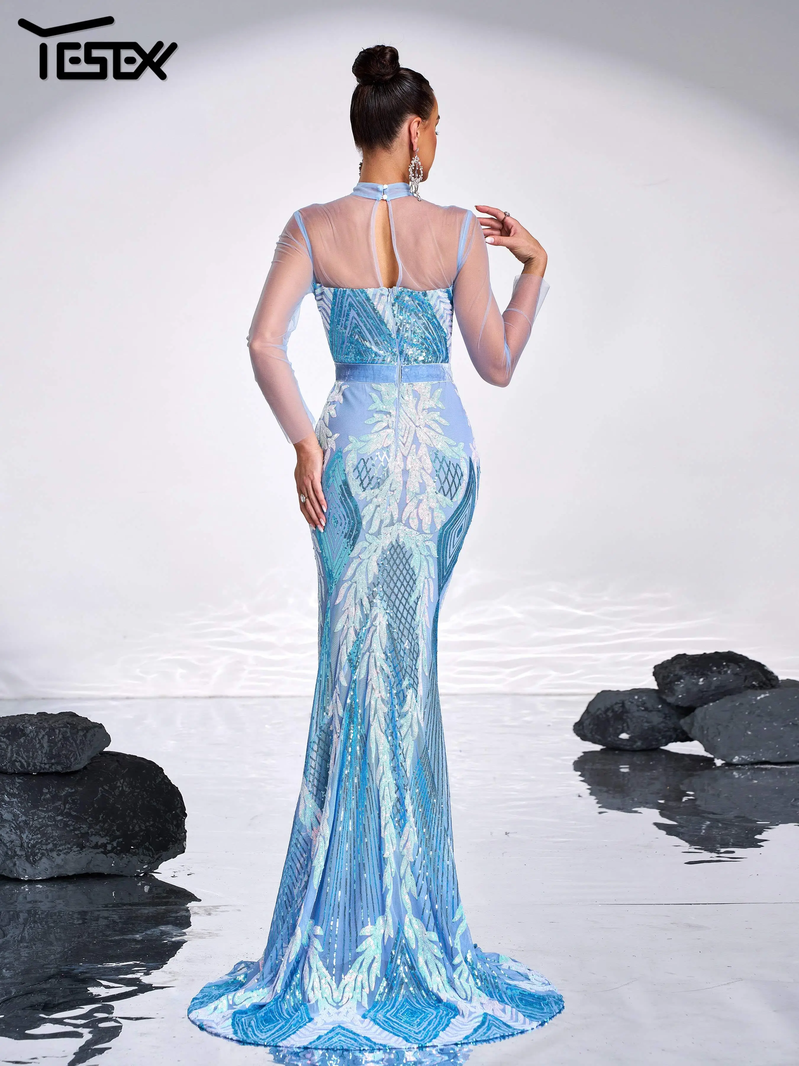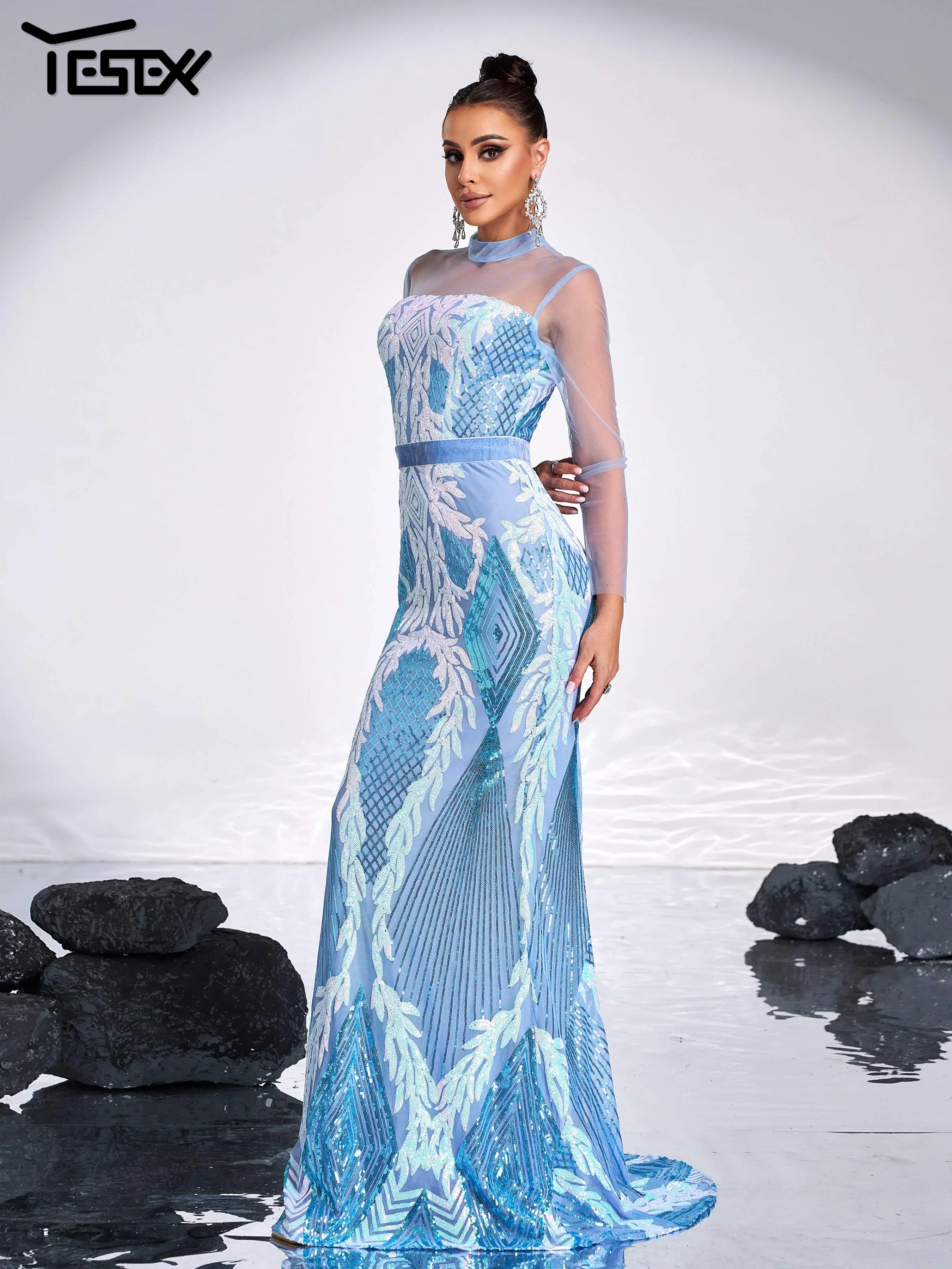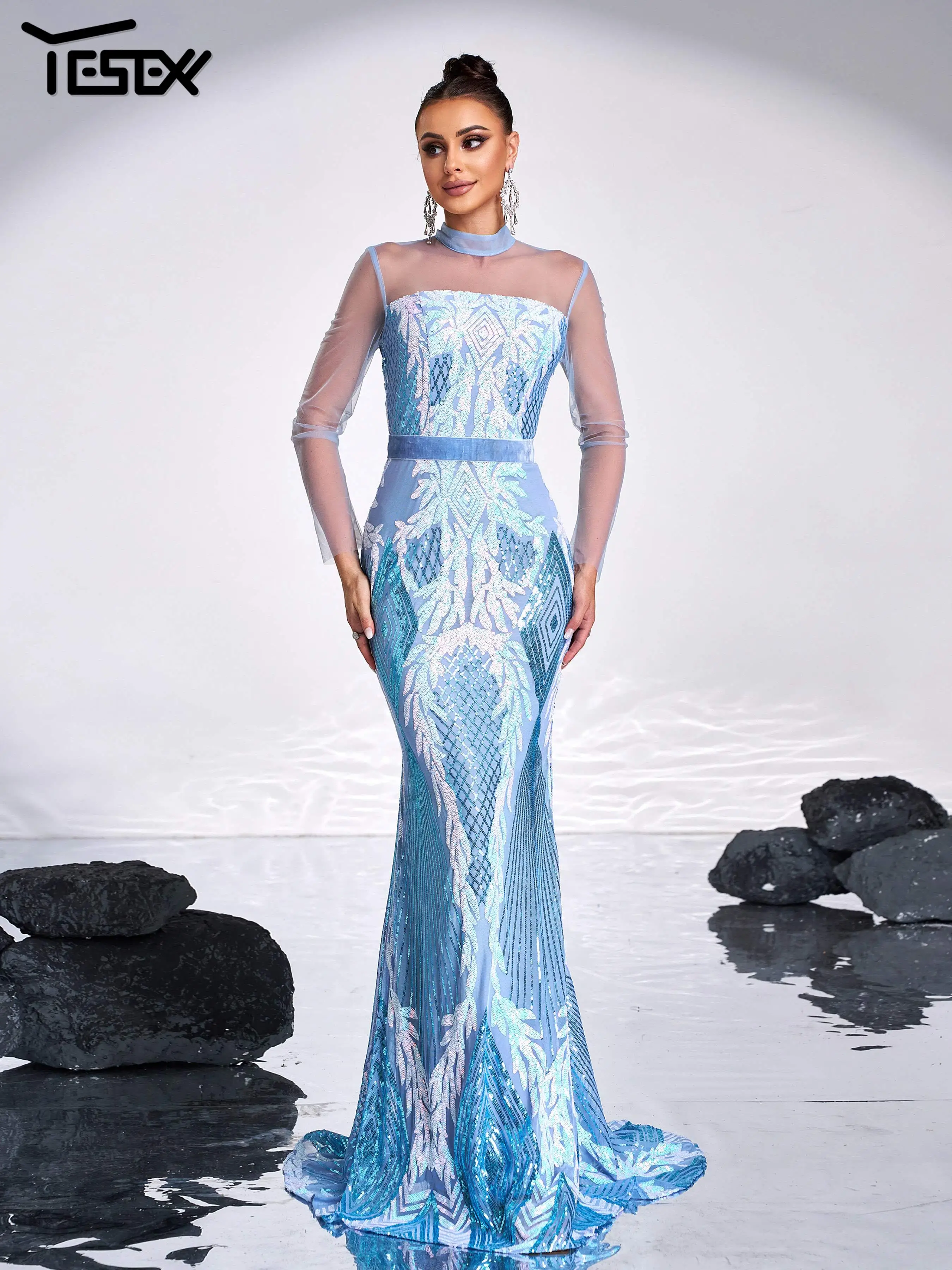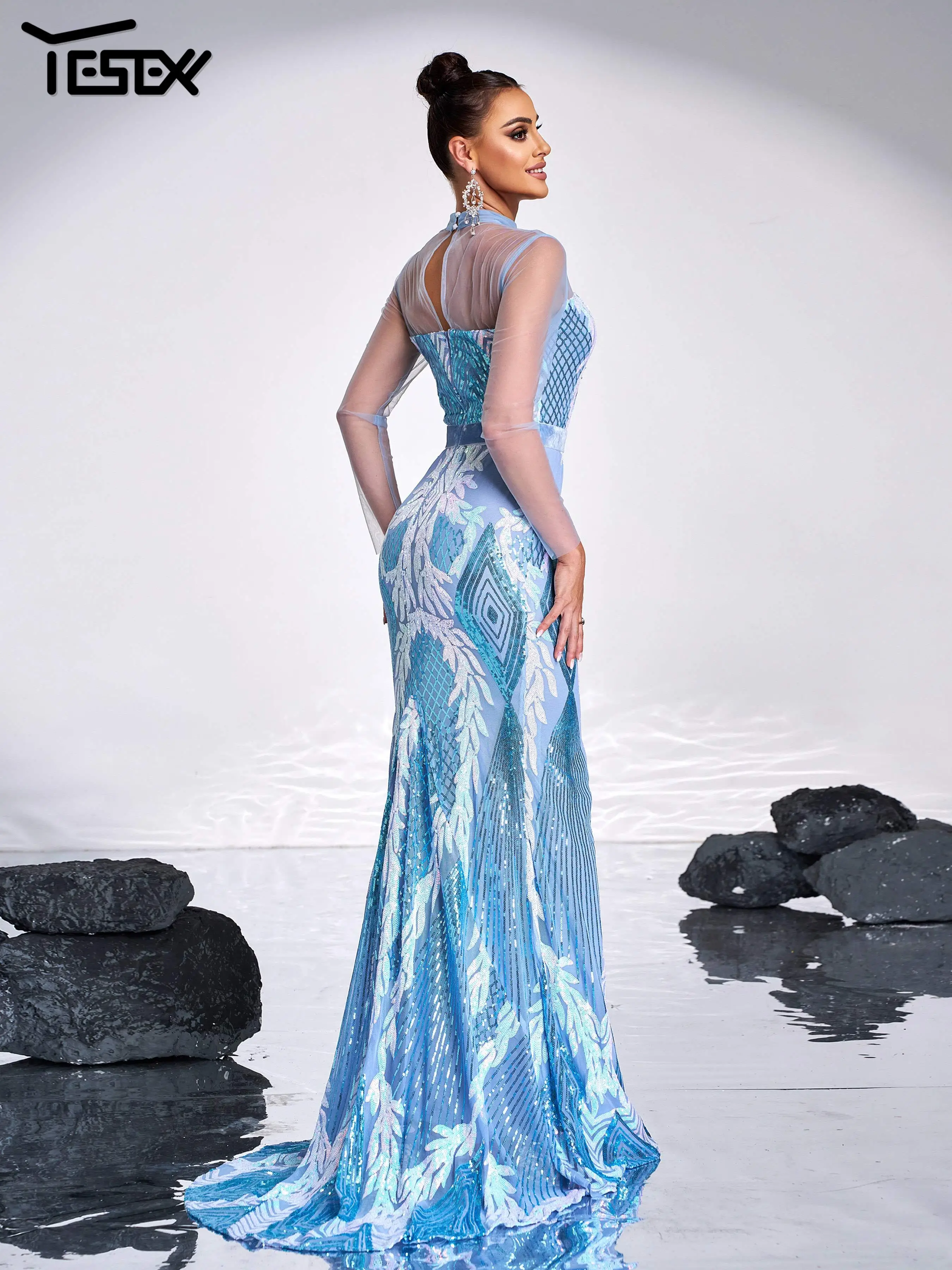 Yesexy New Elegant Party Dresses Women 2024 Mermaid Sequin Mesh Evening Prom...